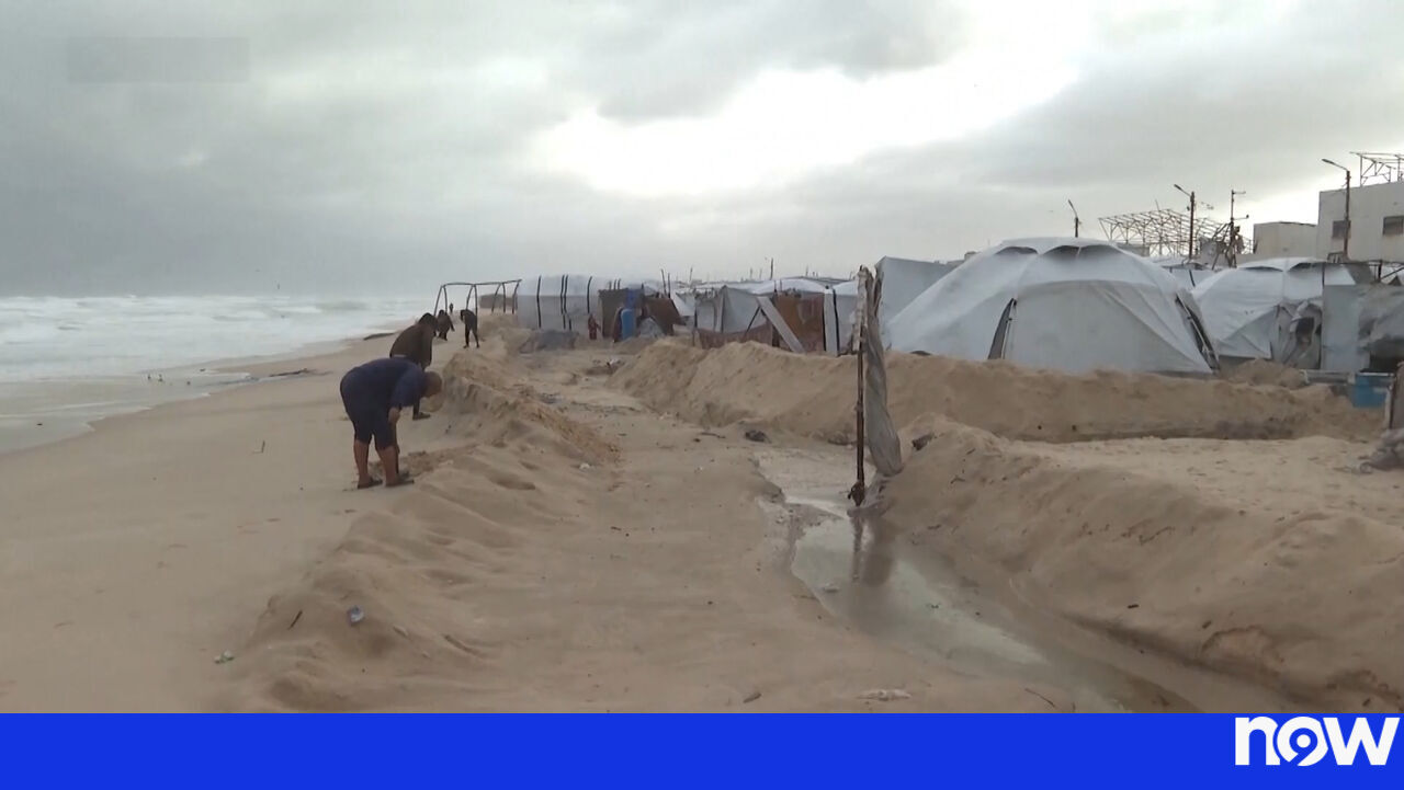 Na zona costeira do sul de Gaza, ventos fortes e temperaturas baixas agravam as condições de vida de palestinianos deslocados que vivem em tendas temporárias. As imagens mostram famílias a tentar proteger-se do frio, num contexto de escassez de abrigo e recursos básicos.