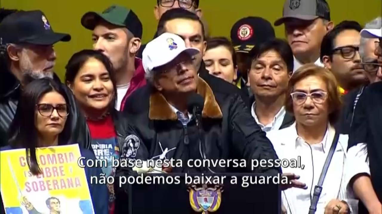 O Presidente dos Estados Unidos (EUA), Donald Trump, falou com o homólogo colombiano, esta quarta-feira, confirmou o líder Gustavo Petro durante um comício em Bogotá.