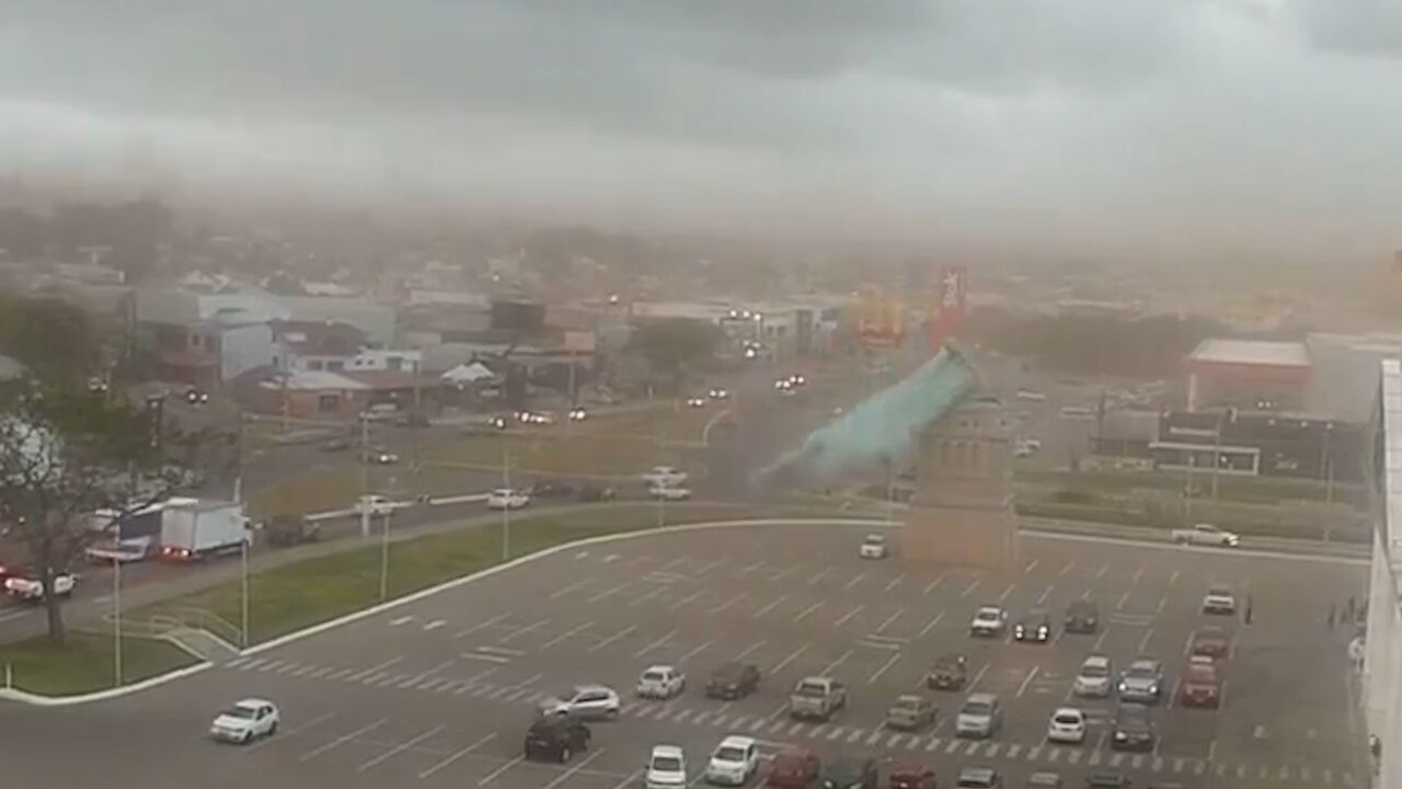 Uma réplica da Estátua da Liberdade com 35 metros de altura em Guaíba, Brasil, desabou e estilhaçou-se com o impacto durante uma forte tempestade que atingiu a cidade na segunda-feira.
