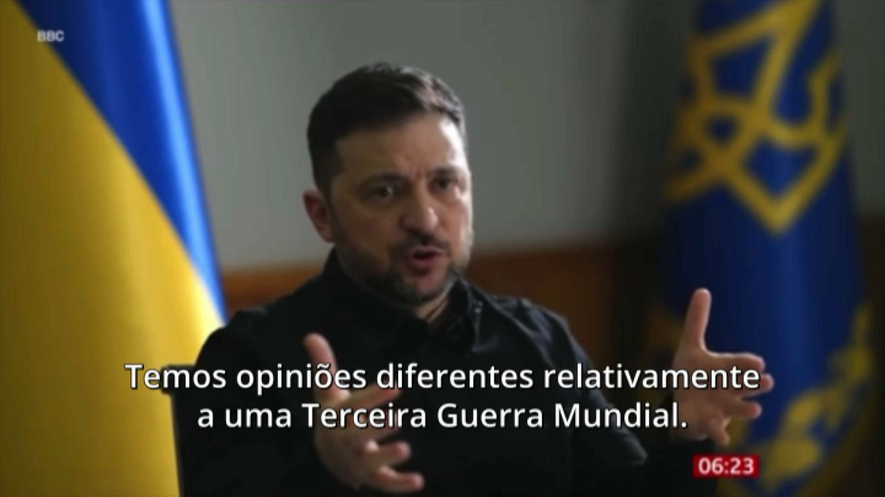 O Presidente da Ucrânia, Volodymyr Zelensky, disse à "BBC" que considera que o homólogo russo, Vladimir Putin, "já começou a Terceira Guerra Mundial".