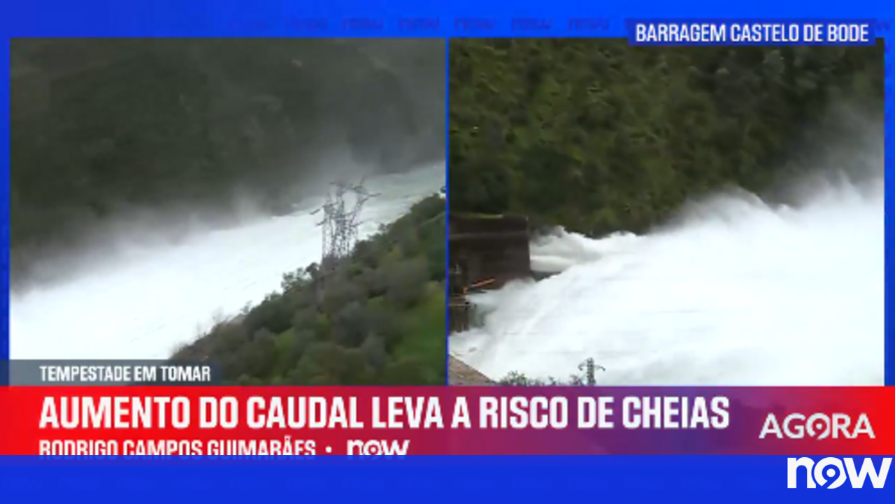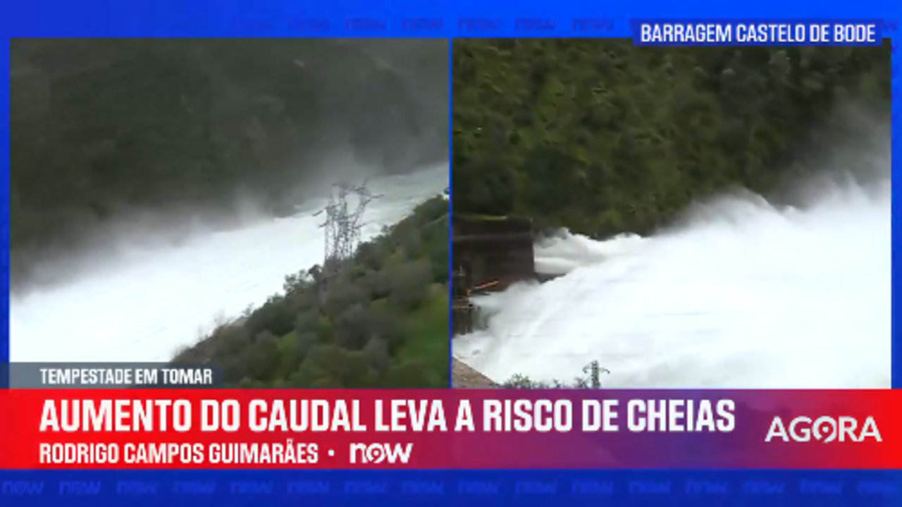Em Tomar é possível ver a grande quantidade e a força da água que é expelida na barragem de Castelo de Bode. Com o risco de inundações em todo o país, a barragem necessita de libertar toda a água para aliviar a pressão.