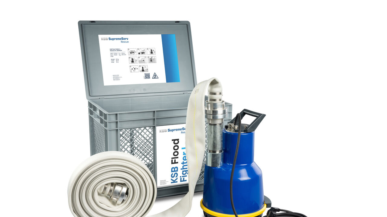 Para ajudar a combater este “novo” flagelo natural, a KSB desenvolveu um novo produto, o KSB Flood Fighter, um kit de emergência capaz de drenar rapidamente qualquer zona inundada, recorrendo não só à sua bomba de drenagem mais robusta e eficiente, mas juntando-lhe uma mangueira de 15 metros, uma caixa de segurança e filtragem, e umas luvas para proteger o utilizador.