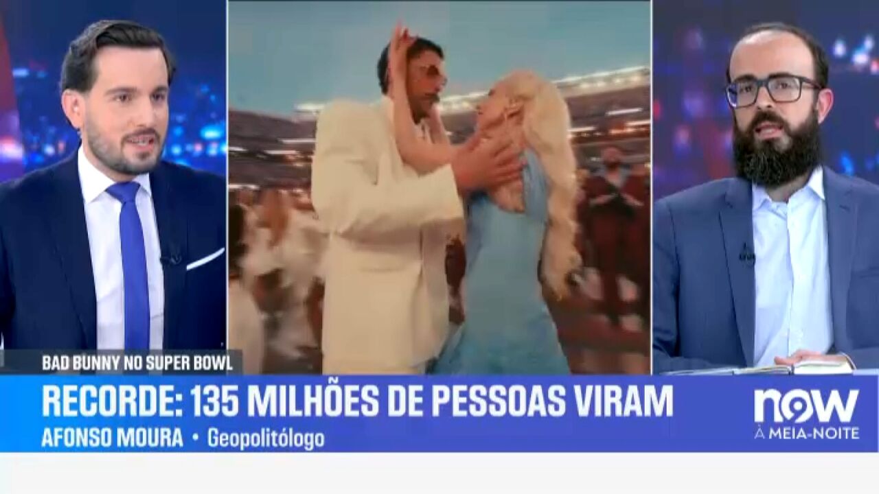 O Geopolitólogo Afonso Moura esteve no NOW à Meia-Noite para falar sobre a atuação de Bad Bunny no Super Bowl, que motivou muitas críticas do presidente dos EUA. Donald Trump classificou-a como terrível e disse "nem se perceber o que o cantor dizia".