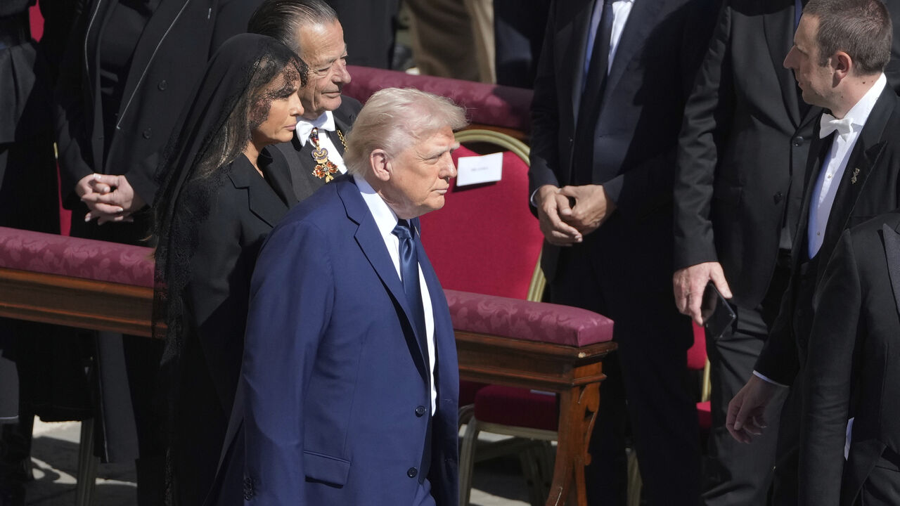 Trump e Melania fizeram uma pausa para rezar diante do caixão fechado do Papa.