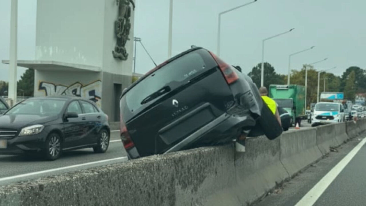 A viatura ligeira ficou imobilizada sobre o separador central.