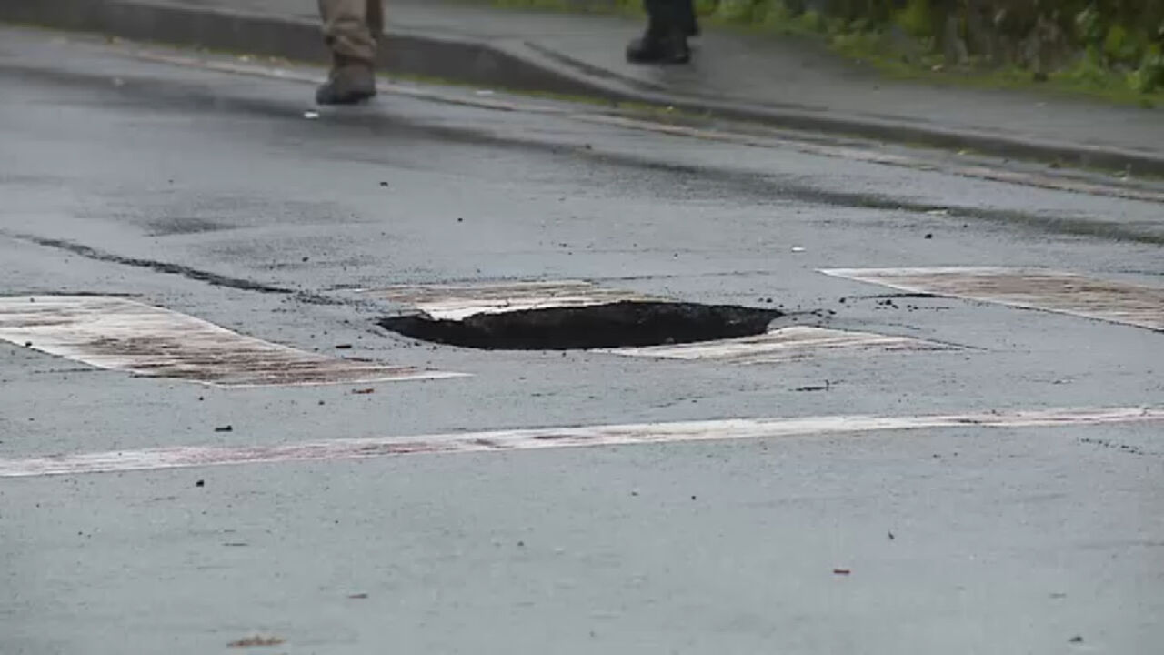 A cratera terá sido causada pelas chuvas das últimas semanas, que arrastaram as terras que sustentavam a conduta pública da água.