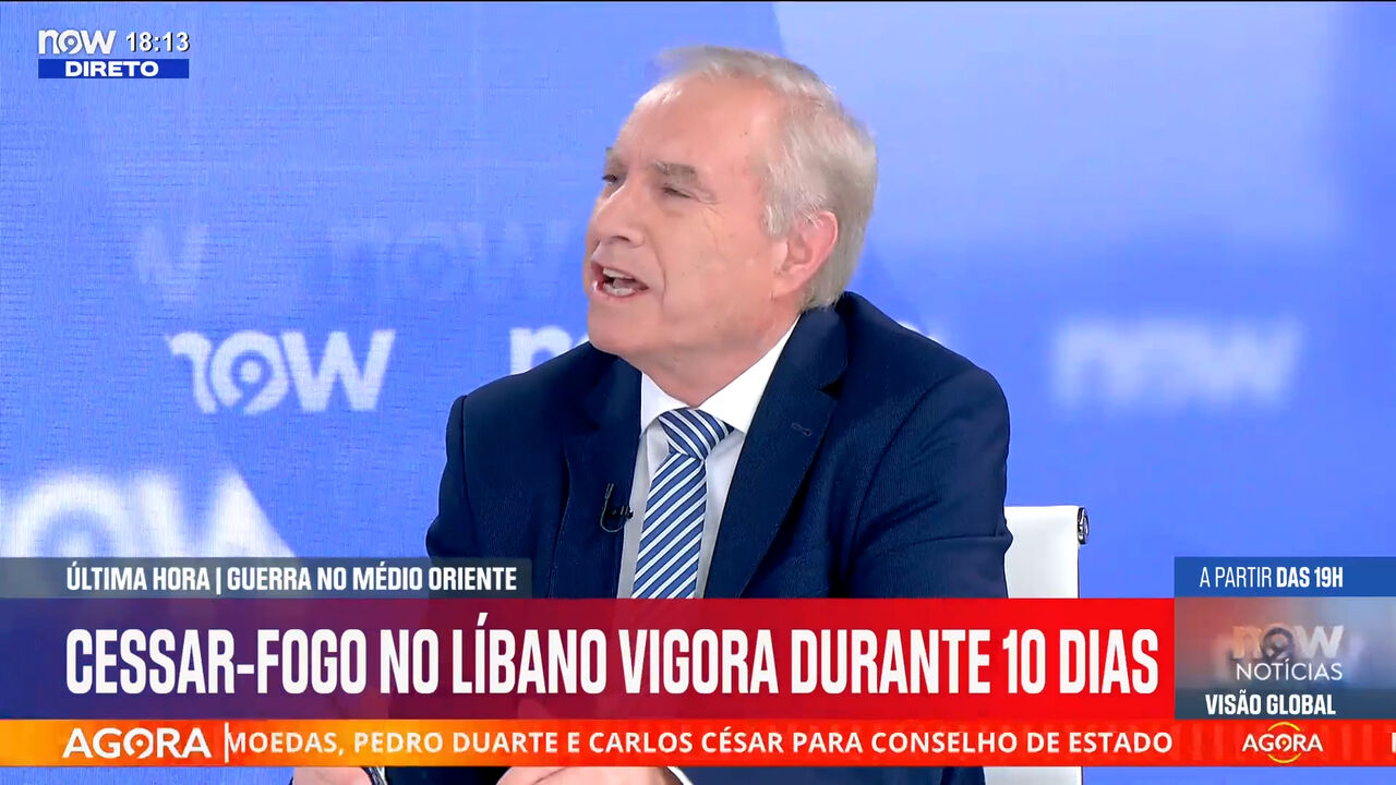 O General Isidro de Morais Pereira, a especialista em assuntos internacionais Catarina Caria e o especialista em assuntos internacionais José Filipe Pinto estiveram no NOW esta quarta-feira e falaram sobre o anúncio de uma trégua de dez dias entre Israel e o Líbano. O General Isidro de Morais Pereira considerou que «não parece que haja aqui fumo sem fogo», sublinhando a influência norte-americana sobre as lideranças no Médio Oriente e a importância de um cessar-fogo para as negociações em curso.
