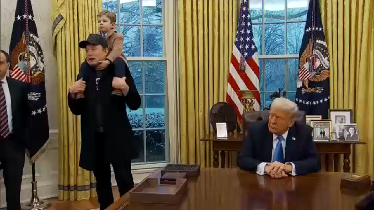 Na Sala Oval, com o filho aos ombros e ao lado do Presidente norte-americano, o multimilionário Elon Musk foi confrontado com este erro, do próprio departamento que chefia.