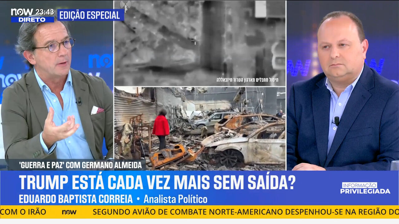 O analista político Eduardo Batista Correia esteve no Guerra e Paz, no NOW, e analisou a situação no Irão. O especialista destacou o desenvolvimento científico e tecnológico iraniano, afirmando que «o Irão tem estado a usar a sua tecnologia para condicionar o Golfo Pérsico». Eduardo Batista Correia responsabilizou ainda o Presidente dos Estados Unidos, notando que «estamos todos no meio de um grande sarilho cujo principal e único responsável é Donald Trump».
