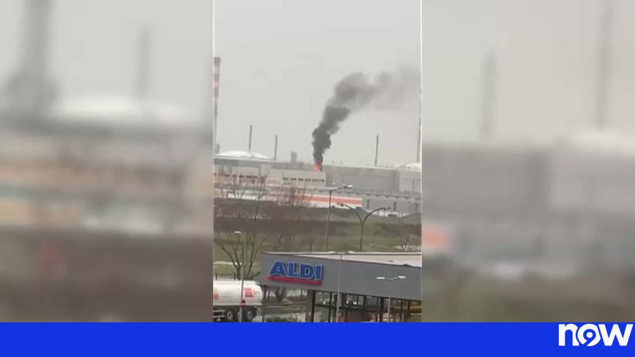Do meio da empresa que foi desativada em 2021, via-se a quilómetros de distância uma coluna de fumo negro e fogo, como mostram os vídeos a que tivemos acesso.