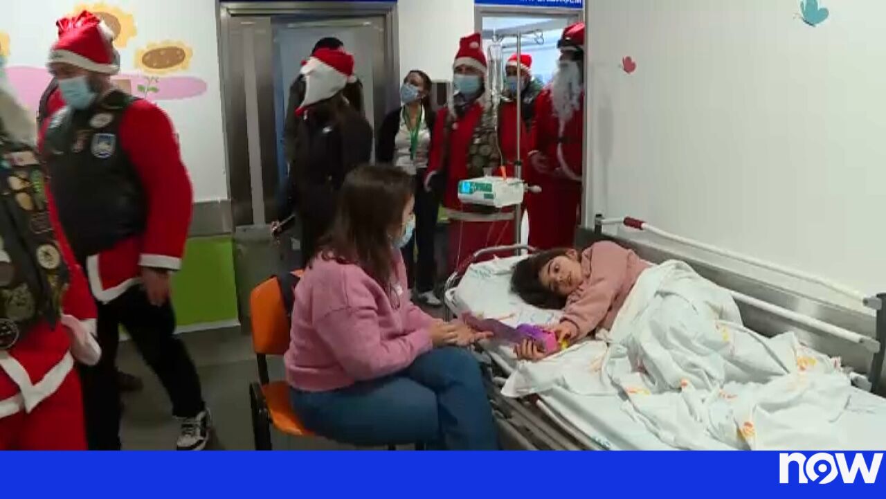 Elementos do grupo São Rafael chegaram aos serviços de pediatria e de obstetrícia do hospital das Caldas da Rainha de mota e vestidos à Pai Natal.