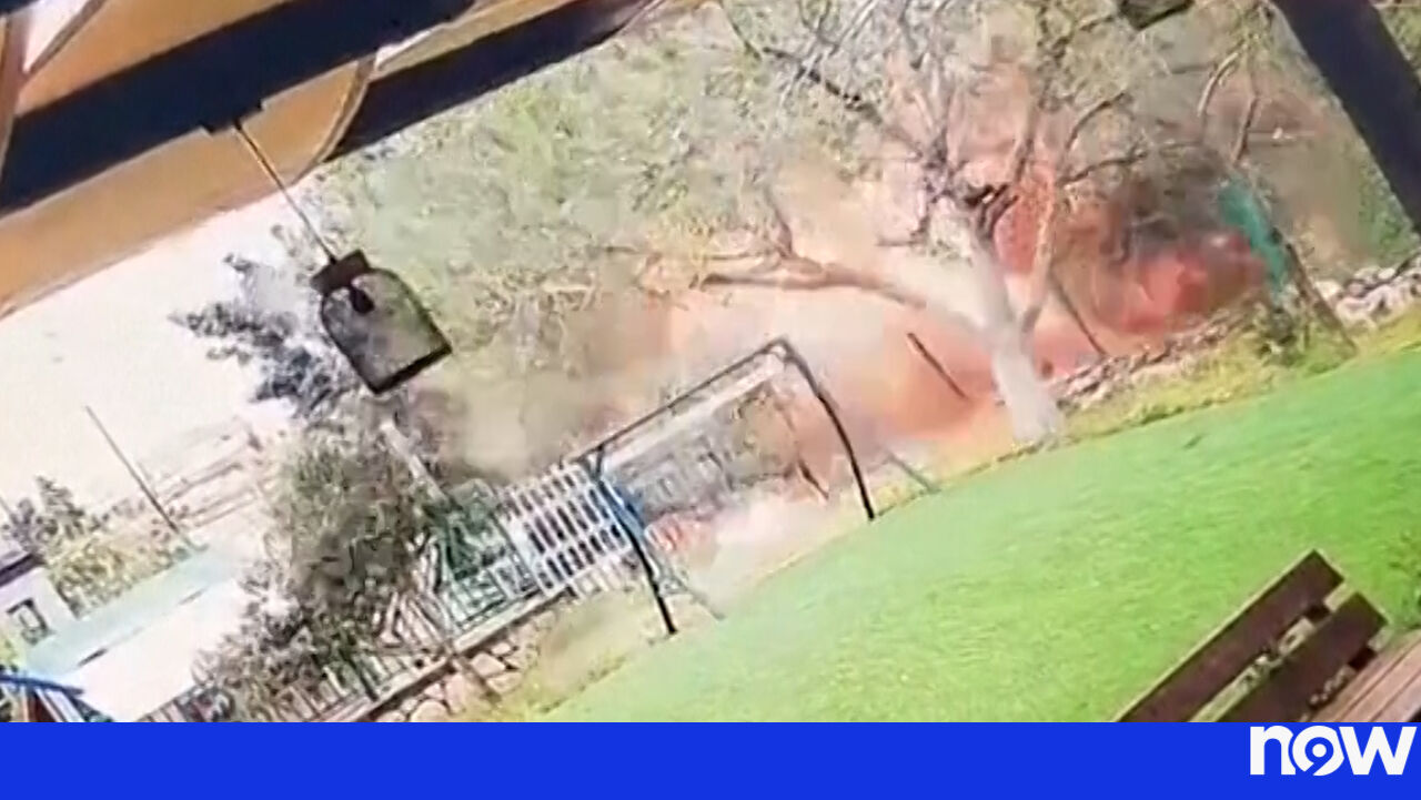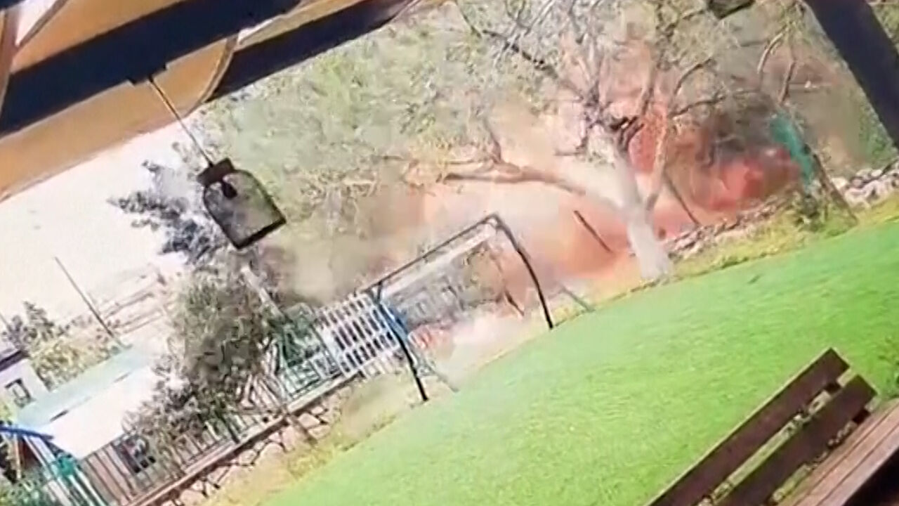 Imagens de videovigilância captam explosão em quintal após míssil iraniano ser intercetado sobre a Cisjordânia