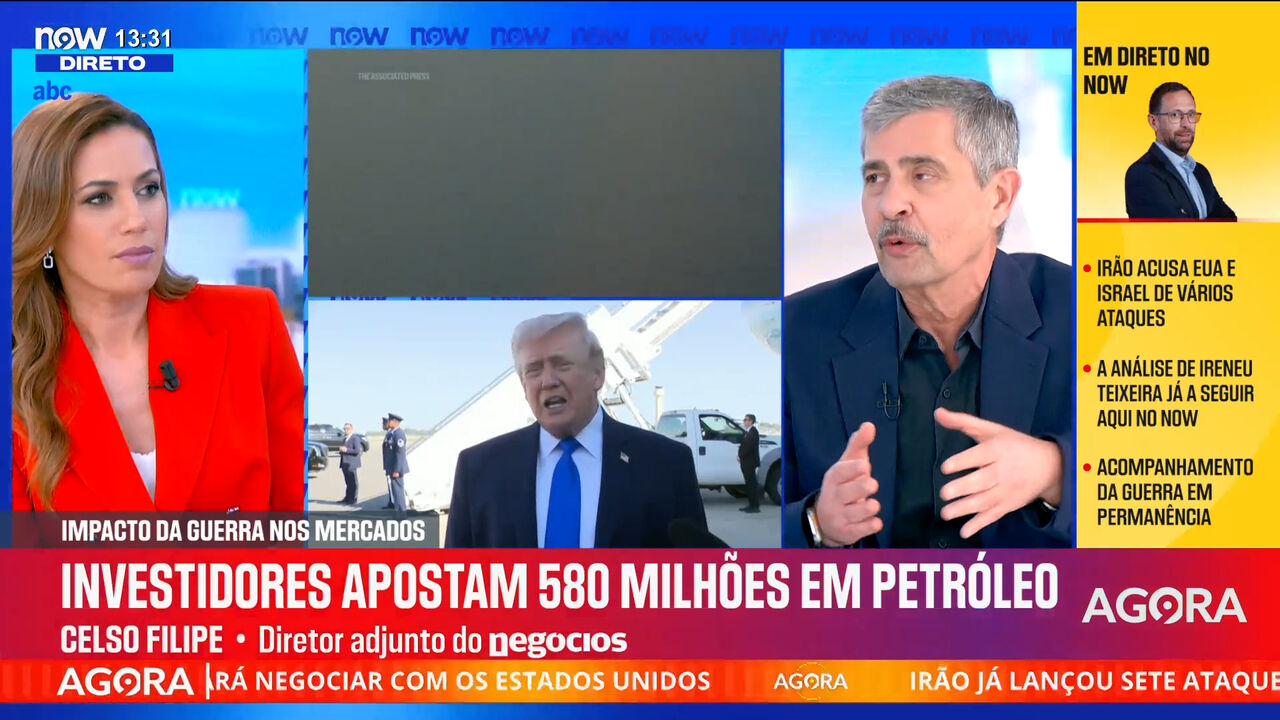 Celso Felipe, diretor adjunto do Negócios, esteve no NOW esta terça-feira e falou sobre o anúncio de Donald Trump, que disse que houve negociações produtivas com o Irão. Alguns investidores apostaram 580 milhões de dólares em petróleo minutos antes da publicação do Presidente norte–americano.