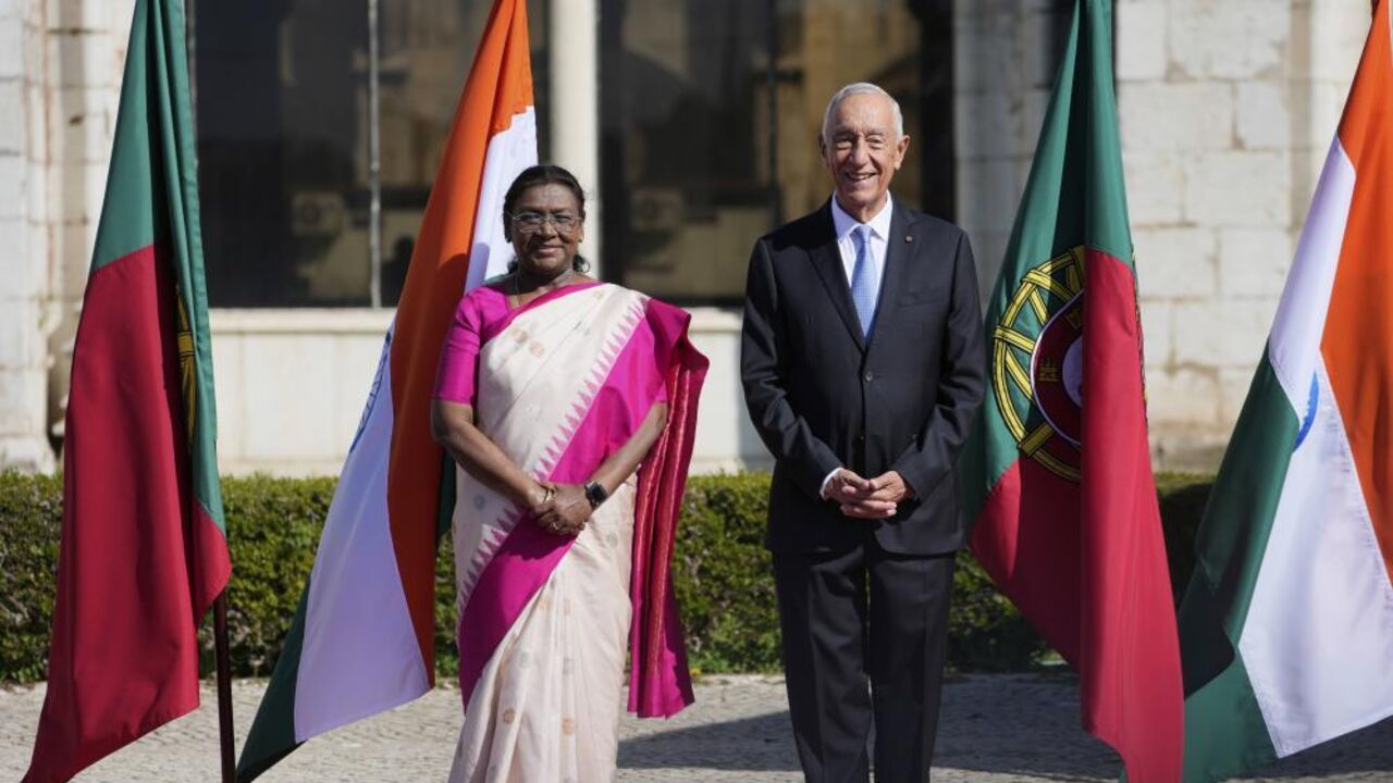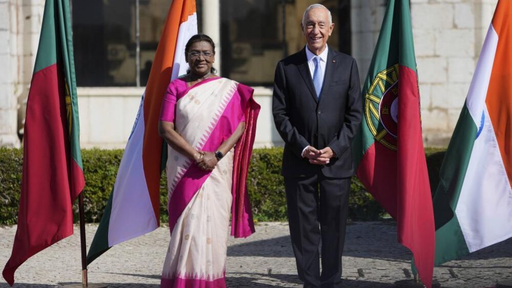 Marcelo Rebelo de Sousa falava perante a Presidente da Índia, Droupadi Murmu, durante a sua visita de Estado a Portugal.