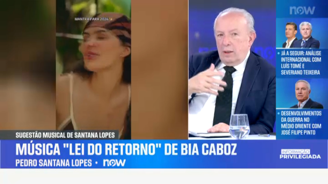 O presidente da Câmara da Figueira da Foz, Pedro Santana Lopes, escolheu o tema "Lei do Retorno", de Bia Caboz, como sugestão musical desta semana no NOW. "Dá uma nova roupagem ao fado e é uma pessoa que tem feito grandes atuações", destaca.