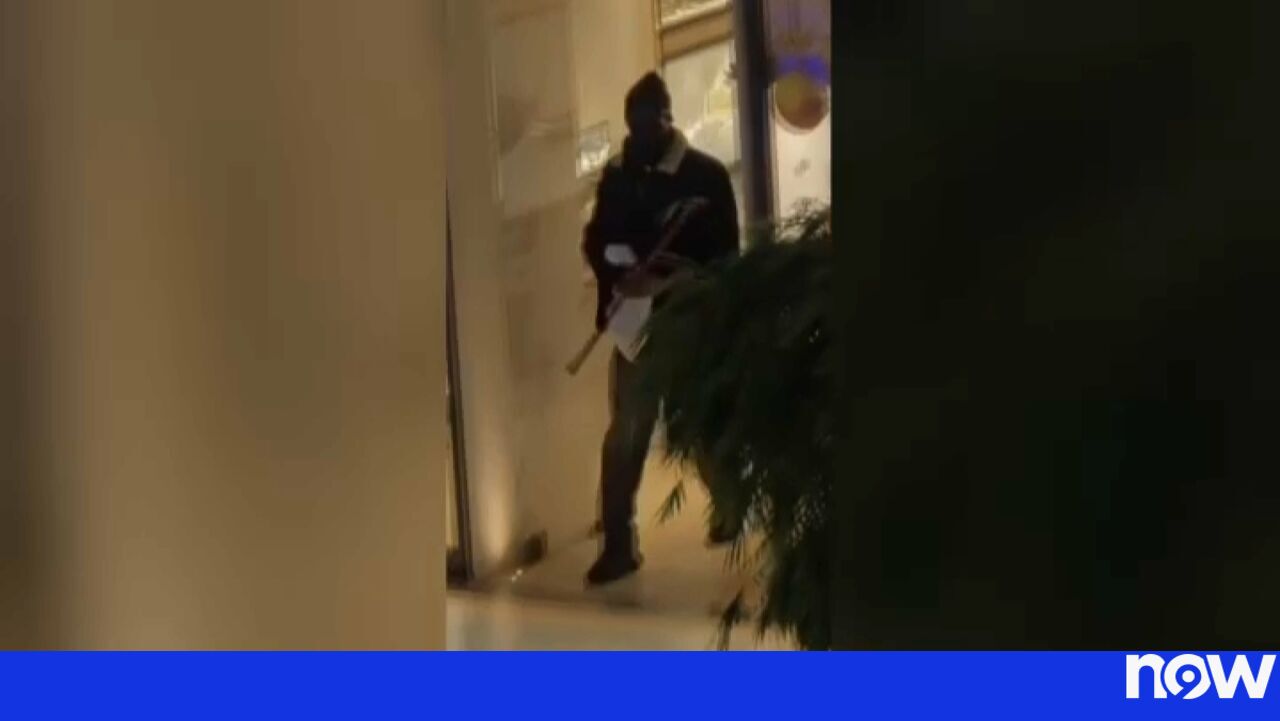 O suspeito entrou numa ourivesaria munido de um pé-de-cabra e uma máscara a tapar o rosto. As ações foram registadas em vídeo e novas imagens comprovam os movimentos do ladrão.