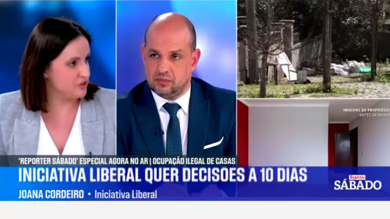 A deputada da Iniciativa Liberal, Joana Cordeiro, o jornalista Sandro Bettencourt, do NOW , e o advogado Ricardo Serrano Vieira participaram esta sexta-feira no programa "Repórter Sábado Especial" para debater a ocupação ilegal de habitações.