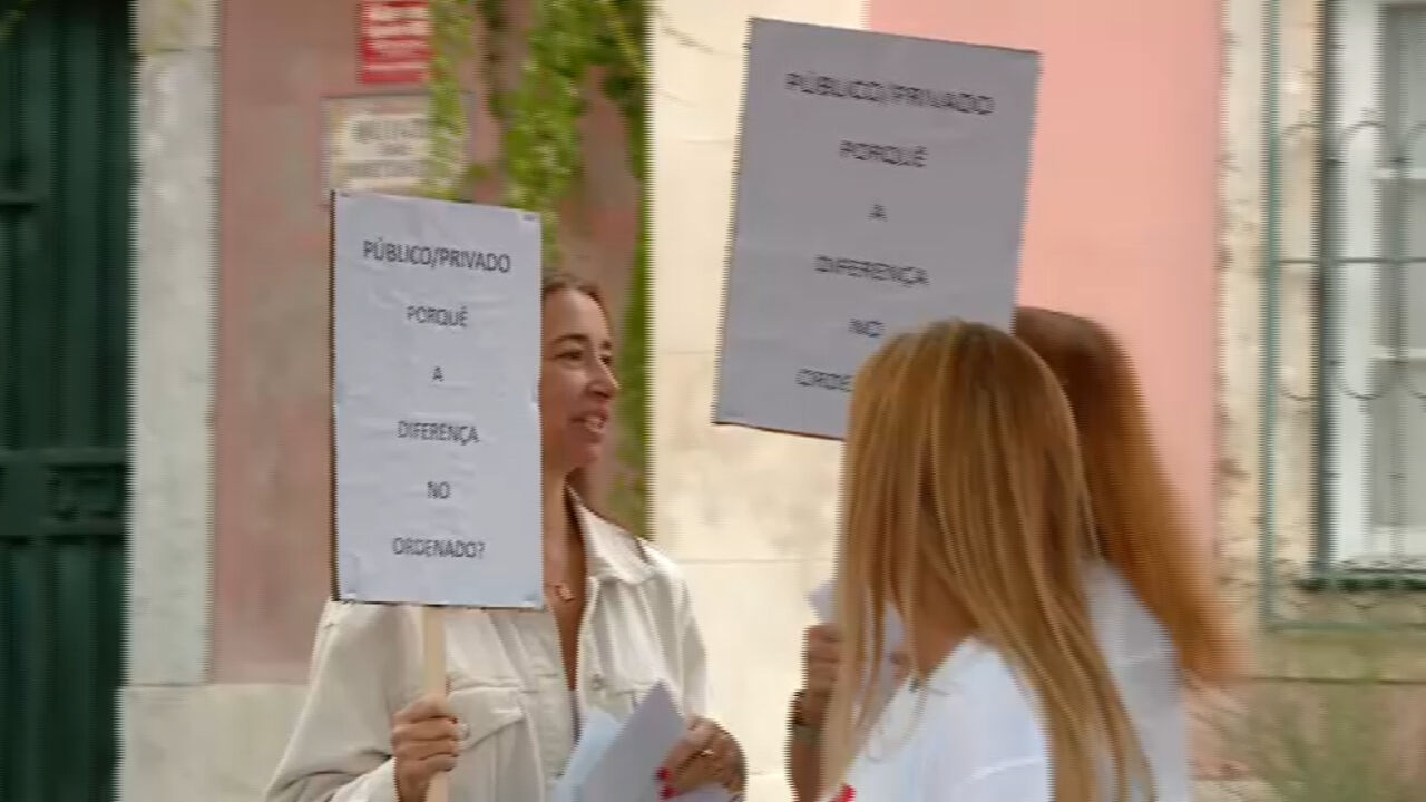 As aulas do colégio privado Manuel Bernardes foram fora das salas. Esta quinta-feira os professores estiveram em luta e em causa está principalmente a igualdade de direitos.