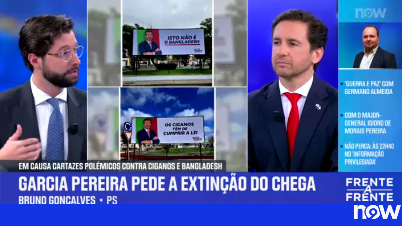 Bruno Gonçalves (PS) e Pedro Frazão (Chega) estiveram Frente a Frente no NOW na noite desta sexta-feira e falaram sobre a queixa apresentada pelo advogado Garcia Pereira na qual pediu a extinção do Chega.