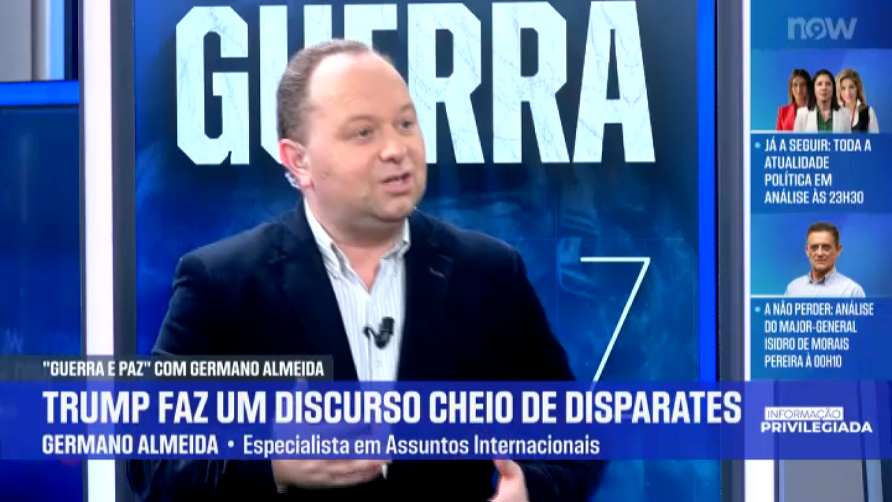 Germano Almeida, autor do programa Guerra e Paz do NOW, afirmou esta quinta-feira que Donald Trump "mente de forma tão descarada que chega a ser deprimente". As declarações do especialista em Assuntos Internacionais ocorrem na sequência do discurso do Presidente norte-americano, na quarta-feira, no qual tentou fazer um balanço da governação de 2025, no mesmo dia em que Tucker Carlson garantiu que Trump iria anunciar uma guerra com a Venezuela. Acabou por não acontecer.