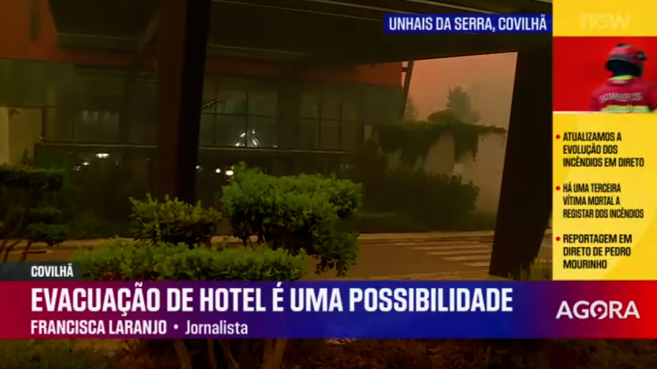 Unhais da Serra, no Município da Covilhã, tem uma frente ativa de fogo que se está a aproximar de habitações, esta tarde de quarta-feira. Há risco de que um hotel em Unhais da Serra tenha de ser evacuado.