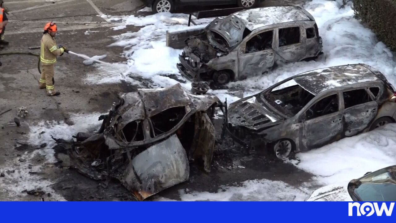 Explosões ecoaram, na capital israelita, na noite de segunda-feira, após vários ataques de mísseis do Irão, deixando destruição nas ruas e veículos queimados.